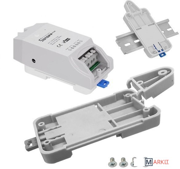 Крепёж для реле Sonoff на DIN рейку Sonoff DR DIN Rail Tray.Позволяет закрепить на DIN рейке такие реле как: Sonoff Basic, Sonoff RF, Sonoff Pow, Sonoff TH16, Sonoff TH10, Sonoff Dual.