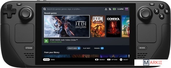 В сотрудничестве с AMD Valve создали специальный гибридный процессор для Steam Deck, оптимизированный для портативных игровых ПК. Мощности этого процессора, функционирующего на базе Zen2 и RDNA2, более чем достаточно для запуска новейших высокобюджетных игр.Когда вы войдёте в свой аккаунт на Steam Deck, то увидите всю свою библиотеку Steam, как на любом другом ПК. Вы сможете найти свои коллекции и избранные игры там, где их оставили.Официальная док-станция соединит Steam Deck с внешними экранами, проводной сетью, периферийными устройствами USB и источниками питания. Если у вас уже есть активный концентратор USB-C, можете использовать и его. Официальная док-станция будет продаваться отдельно.