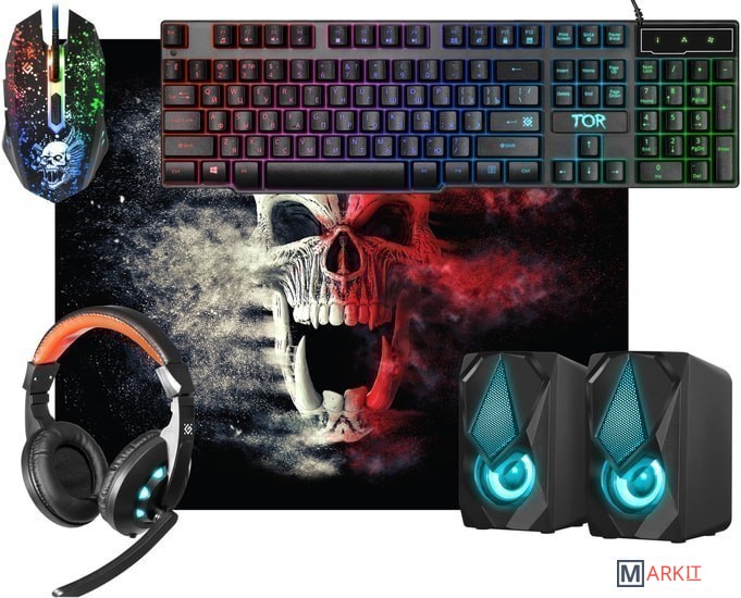 Markit » Комплекты клавиатура и мышь » Клавиатура + мышь с ковриком + наушники + колонки Defender Tor MHP-127