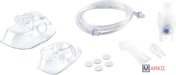 | Комплект поставки | КомпрессорДетская маскаВзрослая маскаРотовой мундштукНасадка для носаРаспылительЗапасной воздушный фильтр, 5 шт.РаспылительВоздушный шлангРезинки для масок - 2 шт.Сумка для переноски |