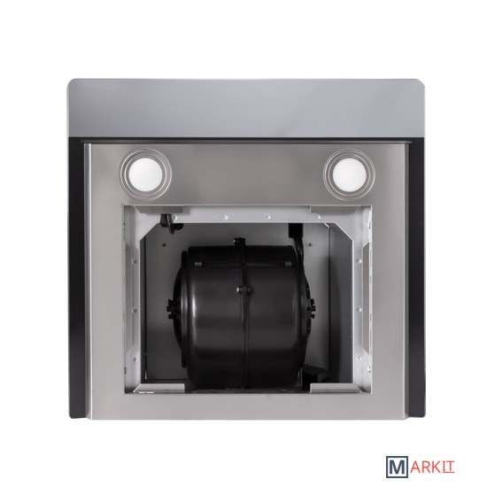 Пластиковая гофра (2м), планка для навешивания вытяжки, кронштейны для навешивания короба-удлинителя, обратный клапан, короб-удлинитель 2 шт., саморезы-дюбеля. |