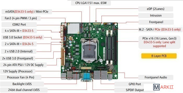 На материнской плате имеется один внутренний коннектор Mini-PCIe (F/S).