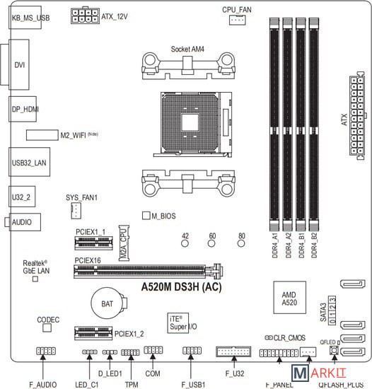 Markit » Материнские платы » Материнская плата Gigabyte A520M DS3H (rev. 1.x)