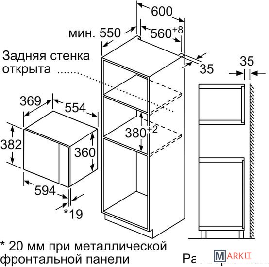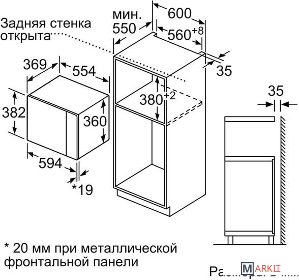 | Размеры ниши для встраивания |