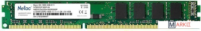 Markit » Оперативная память » Оперативная память Netac Basic 4GB DDR3 PC3-12800 NTBSD3P16SP-04