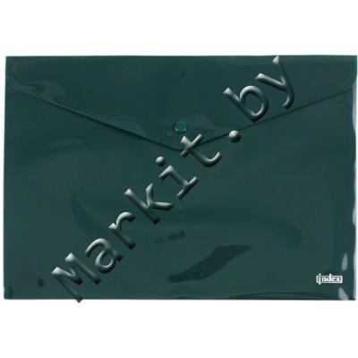 Папка-конверт пластиковая на кнопке Index, толщина пластика 0,18 мм, полупрозрачная зеленая Код: 32884
