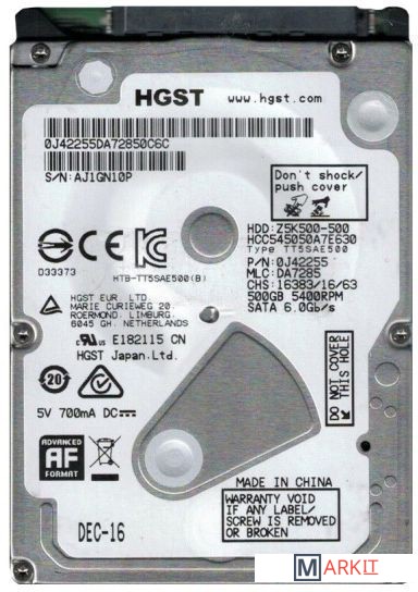 Markit » Жесткие диски » Жесткий диск HGST CinemaStar Z5K500-500 500GB HCC545050A7E630